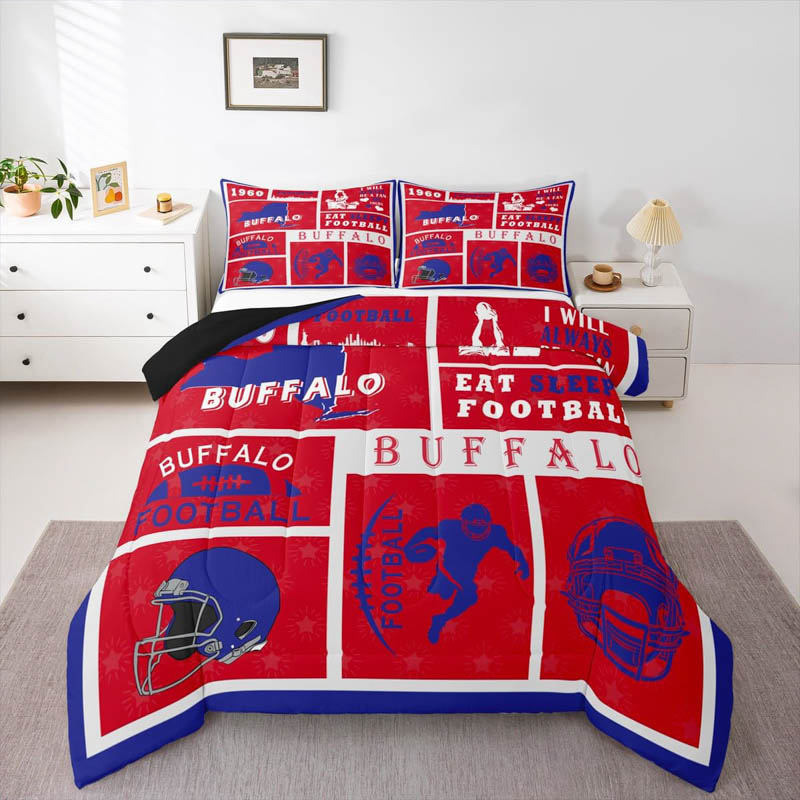 The buffalo bills bed sets quilt set quilts bedroom bedding sets is a durable and soft bedding set made from breathable polyester microfiber. Designed for all seasons, the buffalo bills bed sets quilt set quilts bedroom bedding sets offers lightweight warmth and comfort. The buffalo bills bed sets quilt set quilts bedroom bedding sets includes a zipper closure for easy care and lasting convenience.