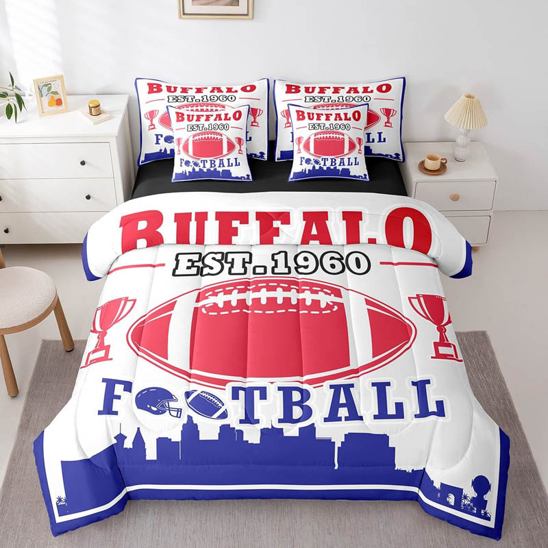 The buffalo bills bedding sets quilt set quilts bedroom bedding set is a durable and soft bedding set made from breathable polyester microfiber. Designed for all seasons, the buffalo bills bedding sets quilt set quilts bedroom bedding set offers lightweight warmth and comfort. The buffalo bills bedding sets quilt set quilts bedroom bedding set includes a zipper closure for easy care and lasting convenience.