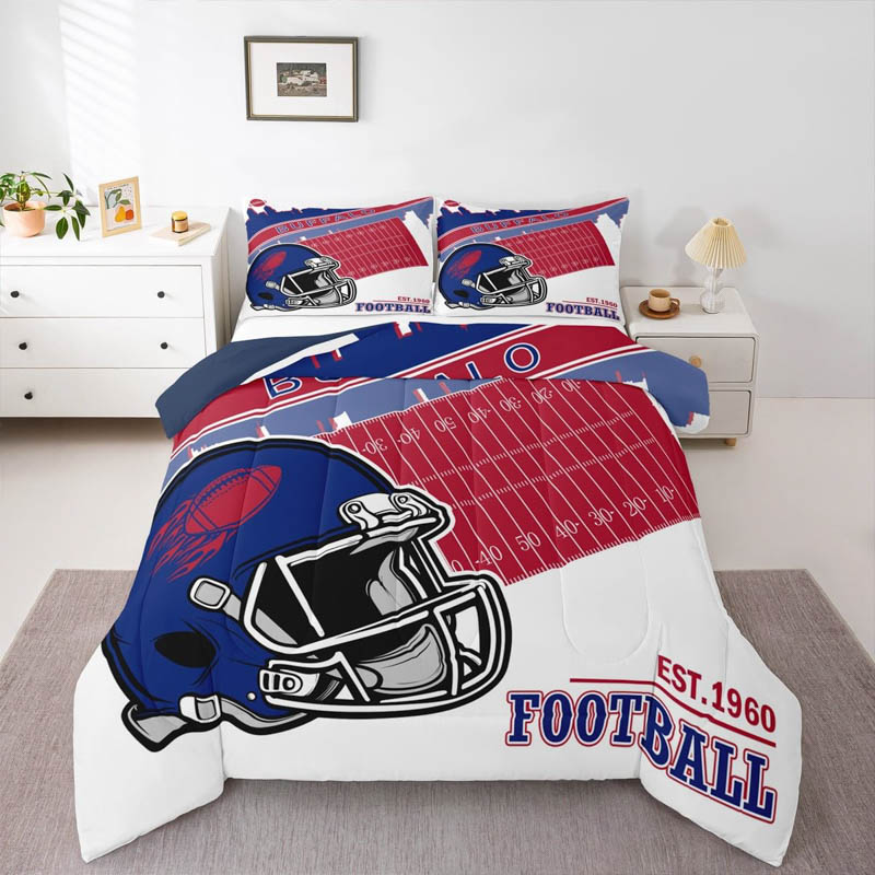 The buffalo bills bedding sets quilt sets quilts bedroom bedding sets is a durable and soft bedding set made from breathable polyester microfiber. Designed for all seasons, the buffalo bills bedding sets quilt sets quilts bedroom bedding sets offers lightweight warmth and comfort. The buffalo bills bedding sets quilt sets quilts bedroom bedding sets includes a zipper closure for easy care and lasting convenience.