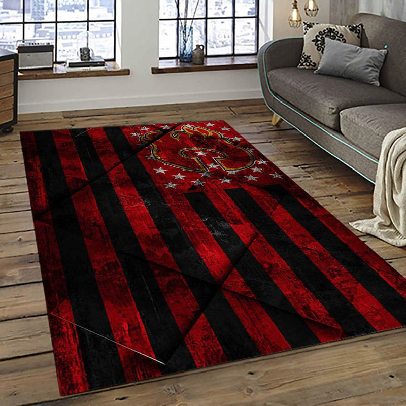 Our calgary flames area rug calgary flames carpet dining room rug outdoor rugs is made with a flannel surface and a 6-7mm thick sponge middle layer for added comfort. The calgary flames area rug calgary flames carpet dining room rug outdoor rugs is non-slip, washable, and perfect for indoor or outdoor use. With an anti-skid non-woven fabric bottom, the calgary flames area rug calgary flames carpet dining room rug outdoor rugs remains firmly in place, even when wet.