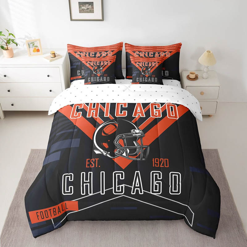 The chicago bears bed set quilt set quilt bedroom bedding sets is a durable and soft bedding set made from breathable polyester microfiber. Designed for all seasons, the chicago bears bed set quilt set quilt bedroom bedding sets offers lightweight warmth and comfort. The chicago bears bed set quilt set quilt bedroom bedding sets includes a zipper closure for easy care and lasting convenience.