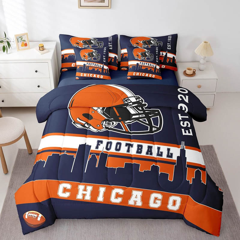 The chicago bears bedding set quilt set quilts bedroom bedding sets is a durable and soft bedding set made from breathable polyester microfiber. Designed for all seasons, the chicago bears bedding set quilt set quilts bedroom bedding sets offers lightweight warmth and comfort. The chicago bears bedding set quilt set quilts bedroom bedding sets includes a zipper closure for easy care and lasting convenience.