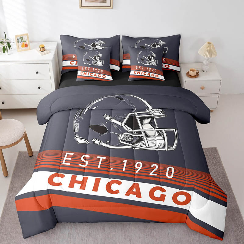 The chicago bears bedding set quilt sets quilts bedroom bedding sets is a durable and soft bedding set made from breathable polyester microfiber. Designed for all seasons, the chicago bears bedding set quilt sets quilts bedroom bedding sets offers lightweight warmth and comfort. The chicago bears bedding set quilt sets quilts bedroom bedding sets includes a zipper closure for easy care and lasting convenience.