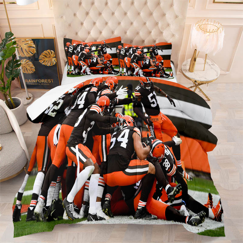 The cleveland browns bedding set quilt set quilts bedroom bedding sets is a durable and soft bedding set made from breathable polyester microfiber. Designed for all seasons, the cleveland browns bedding set quilt set quilts bedroom bedding sets offers lightweight warmth and comfort. The cleveland browns bedding set quilt set quilts bedroom bedding sets includes a zipper closure for easy care and lasting convenience.