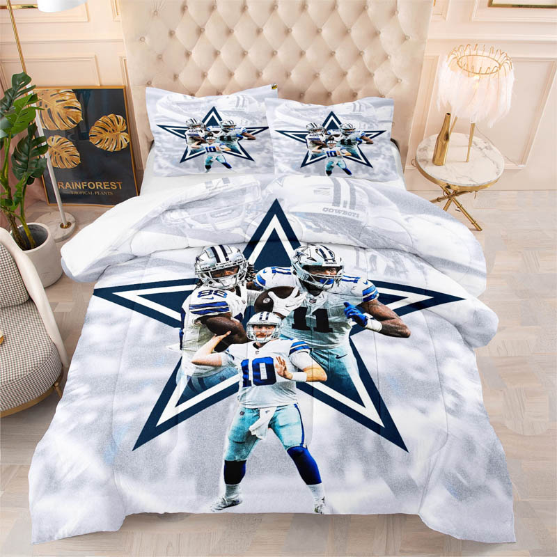The dallas cowboys bedding set quilt sets quilts bedroom bedding set is a durable and soft bedding set made from breathable polyester microfiber. Designed for all seasons, the dallas cowboys bedding set quilt sets quilts bedroom bedding set offers lightweight warmth and comfort. The dallas cowboys bedding set quilt sets quilts bedroom bedding set includes a zipper closure for easy care and lasting convenience.