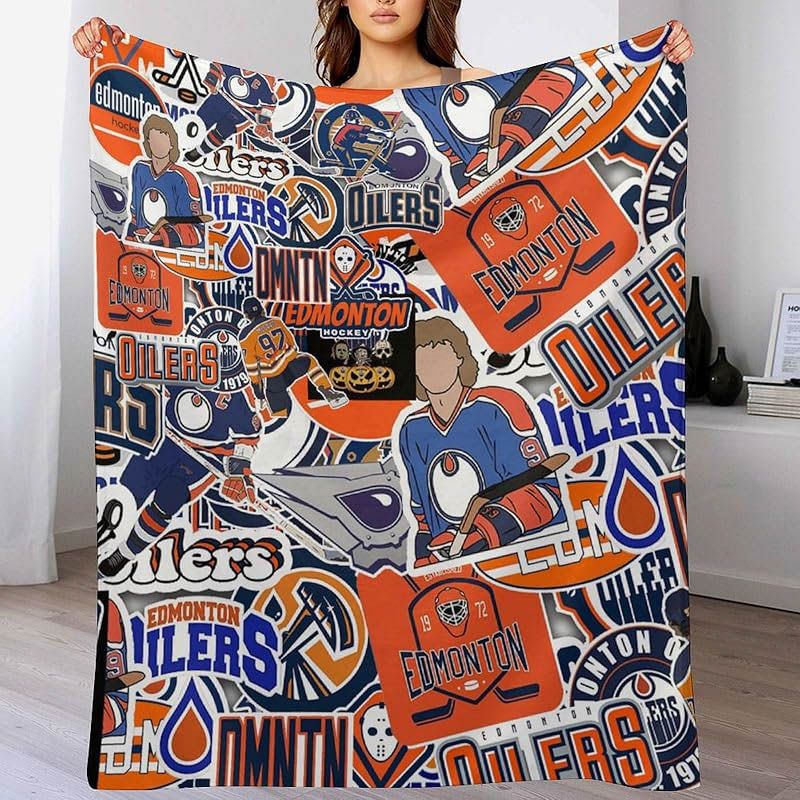 Edmonton Oilers Blanket Sherpa Blanket Throw Plush Blankets