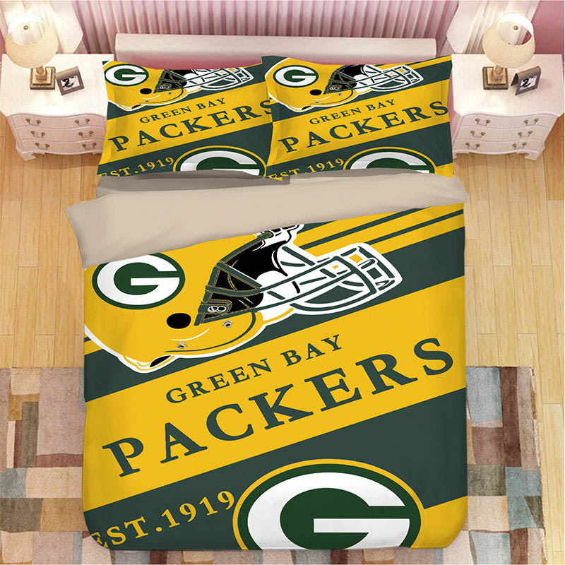 The green bay packers bed set quilt sets quilt bedroom bedding set is a durable and soft bedding set made from breathable polyester microfiber. Designed for all seasons, the green bay packers bed set quilt sets quilt bedroom bedding set offers lightweight warmth and comfort. The green bay packers bed set quilt sets quilt bedroom bedding set includes a zipper closure for easy care and lasting convenience.