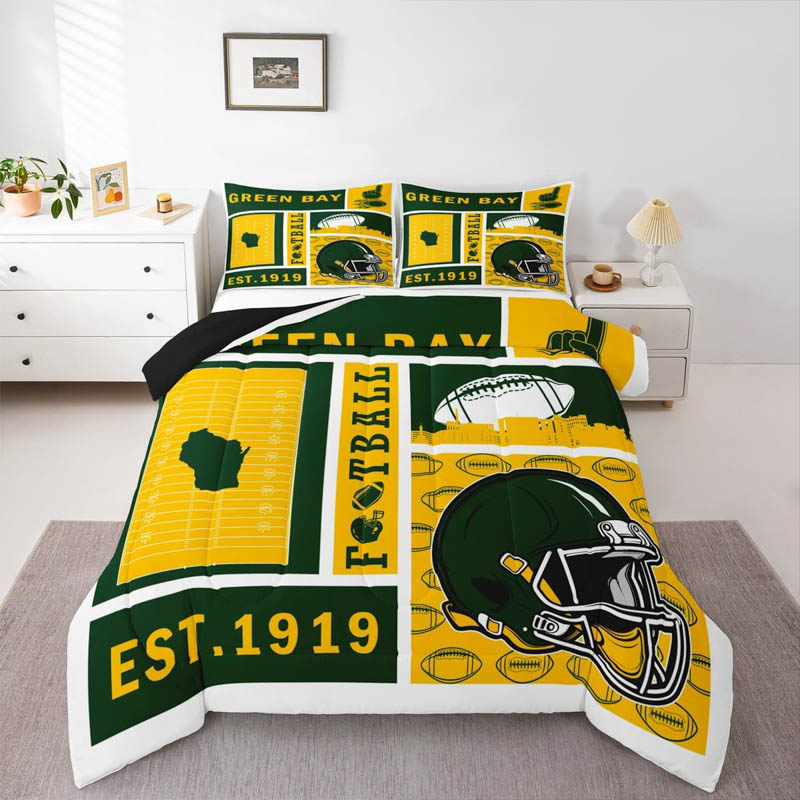 The green bay packers bed sets quilt sets quilts bedroom bedding set is a durable and soft bedding set made from breathable polyester microfiber. Designed for all seasons, the green bay packers bed sets quilt sets quilts bedroom bedding set offers lightweight warmth and comfort. The green bay packers bed sets quilt sets quilts bedroom bedding set includes a zipper closure for easy care and lasting convenience.