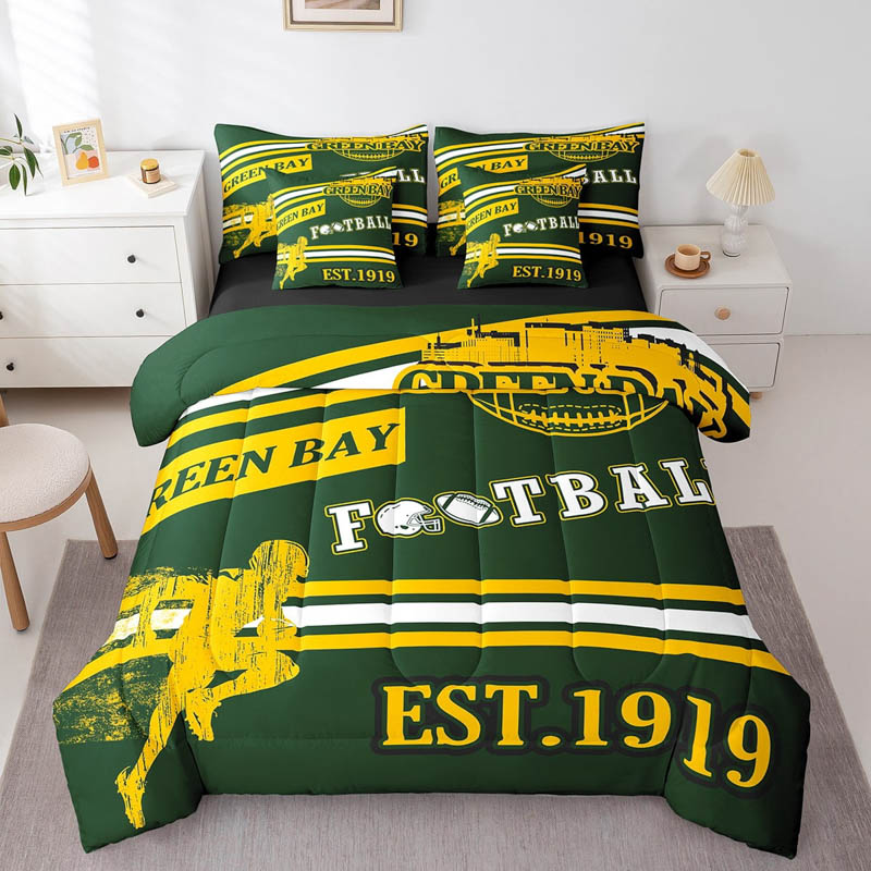The green bay packers bedding sets quilt sets quilts bedroom bedding sets is a durable and soft bedding set made from breathable polyester microfiber. Designed for all seasons, the green bay packers bedding sets quilt sets quilts bedroom bedding sets offers lightweight warmth and comfort. The green bay packers bedding sets quilt sets quilts bedroom bedding sets includes a zipper closure for easy care and lasting convenience.