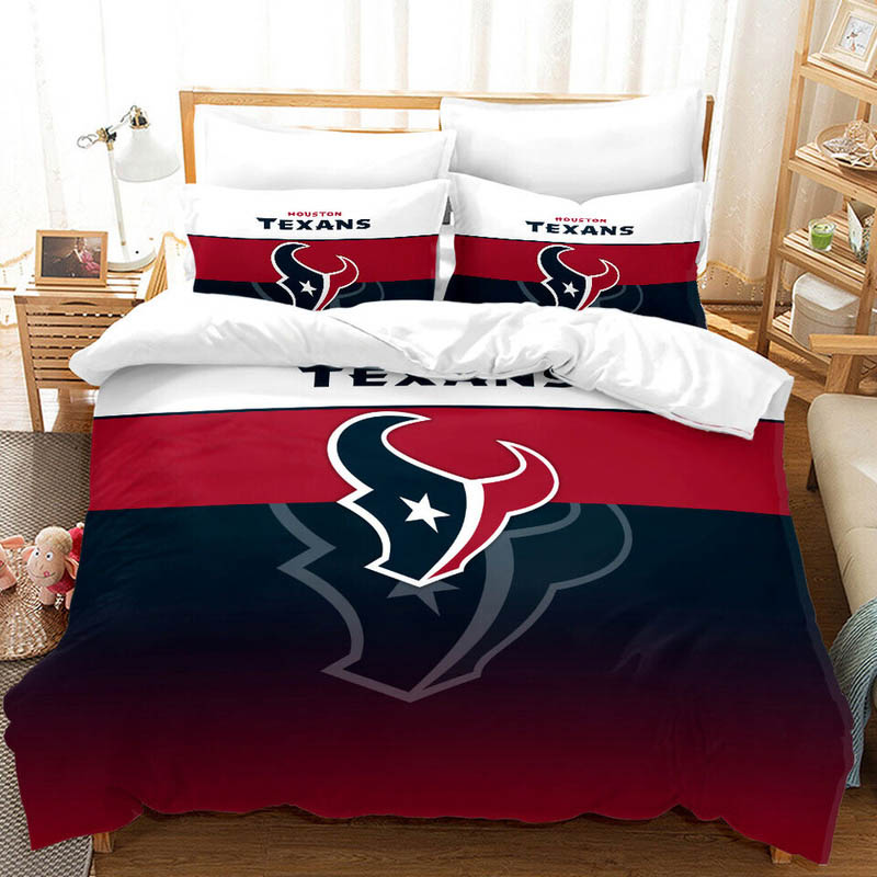 The houston texans bed set quilt sets quilt bedroom bedding set is a durable and soft bedding set made from breathable polyester microfiber. Designed for all seasons, the houston texans bed set quilt sets quilt bedroom bedding set offers lightweight warmth and comfort. The houston texans bed set quilt sets quilt bedroom bedding set includes a zipper closure for easy care and lasting convenience.