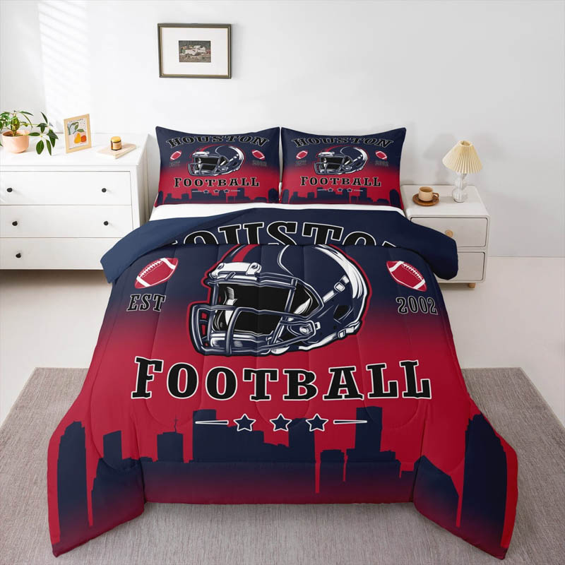 The houston texans bedding sets quilt set quilt bedroom bedding set is a durable and soft bedding set made from breathable polyester microfiber. Designed for all seasons, the houston texans bedding sets quilt set quilt bedroom bedding set offers lightweight warmth and comfort. The houston texans bedding sets quilt set quilt bedroom bedding set includes a zipper closure for easy care and lasting convenience.