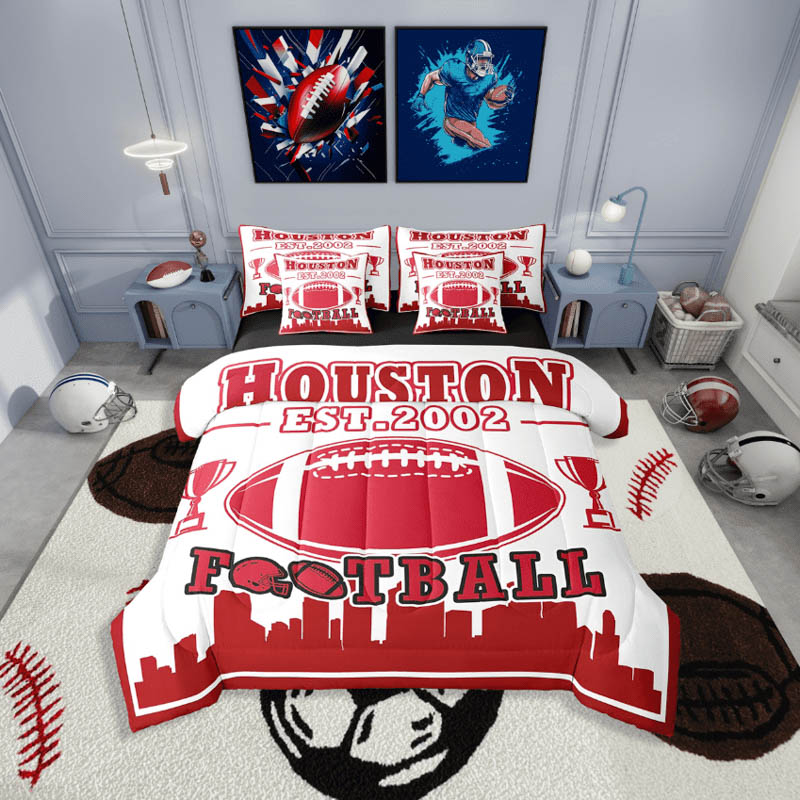 The houston texans bedding sets quilt sets quilts bedroom bedding set is a durable and soft bedding set made from breathable polyester microfiber. Designed for all seasons, the houston texans bedding sets quilt sets quilts bedroom bedding set offers lightweight warmth and comfort. The houston texans bedding sets quilt sets quilts bedroom bedding set includes a zipper closure for easy care and lasting convenience.