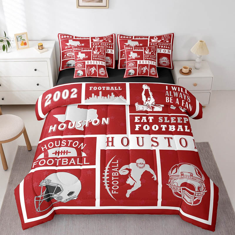 The houston texans bedding sets quilt sets quilts bedroom bedding sets is a durable and soft bedding set made from breathable polyester microfiber. Designed for all seasons, the houston texans bedding sets quilt sets quilts bedroom bedding sets offers lightweight warmth and comfort. The houston texans bedding sets quilt sets quilts bedroom bedding sets includes a zipper closure for easy care and lasting convenience.