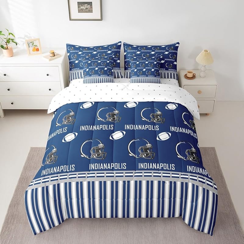 The indianapolis colts bed sets quilt set quilt bedroom bedding sets is a durable and soft bedding set made from breathable polyester microfiber. Designed for all seasons, the indianapolis colts bed sets quilt set quilt bedroom bedding sets offers lightweight warmth and comfort. The indianapolis colts bed sets quilt set quilt bedroom bedding sets includes a zipper closure for easy care and lasting convenience.