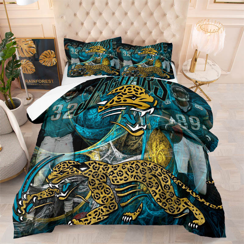 The jacksonville jaguars bedding set quilt set quilt bedroom bedding set is a durable and soft bedding set made from breathable polyester microfiber. Designed for all seasons, the jacksonville jaguars bedding set quilt set quilt bedroom bedding set offers lightweight warmth and comfort. The jacksonville jaguars bedding set quilt set quilt bedroom bedding set includes a zipper closure for easy care and lasting convenience.