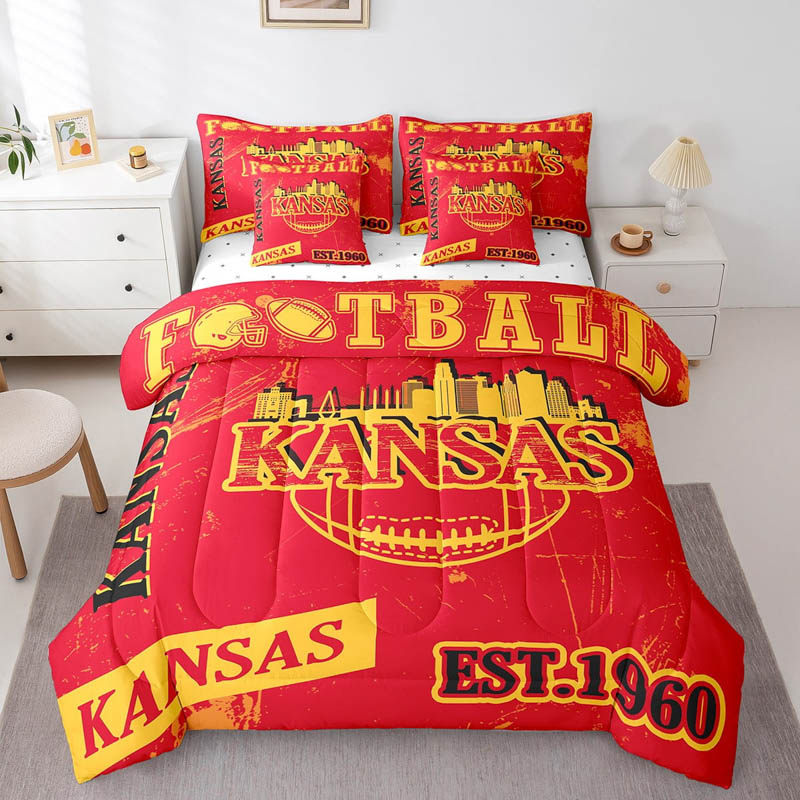 The kansas city chiefs bed set quilt set quilts bedroom bedding sets is a durable and soft bedding set made from breathable polyester microfiber. Designed for all seasons, the kansas city chiefs bed set quilt set quilts bedroom bedding sets offers lightweight warmth and comfort. The kansas city chiefs bed set quilt set quilts bedroom bedding sets includes a zipper closure for easy care and lasting convenience.