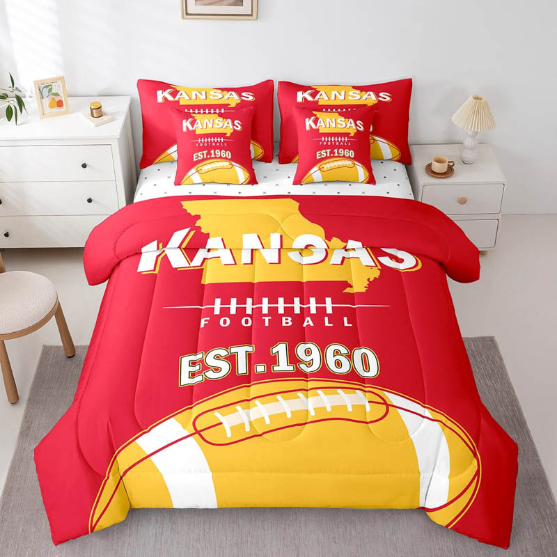 The kansas city chiefs bed set quilt set quilts bedroom bedding sets is a durable and soft bedding set made from breathable polyester microfiber. Designed for all seasons, the kansas city chiefs bed set quilt set quilts bedroom bedding sets offers lightweight warmth and comfort. The kansas city chiefs bed set quilt set quilts bedroom bedding sets includes a zipper closure for easy care and lasting convenience.