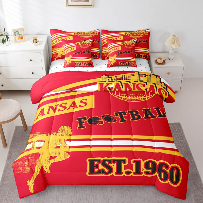 The kansas city chiefs bed sets quilt set quilt bedroom bedding set is a durable and soft bedding set made from breathable polyester microfiber. Designed for all seasons, the kansas city chiefs bed sets quilt set quilt bedroom bedding set offers lightweight warmth and comfort. The kansas city chiefs bed sets quilt set quilt bedroom bedding set includes a zipper closure for easy care and lasting convenience.