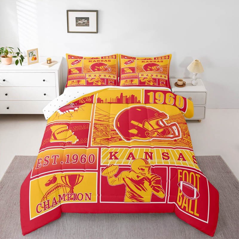The kansas city chiefs bed sets quilt sets quilts bedroom bedding set is a durable and soft bedding set made from breathable polyester microfiber. Designed for all seasons, the kansas city chiefs bed sets quilt sets quilts bedroom bedding set offers lightweight warmth and comfort. The kansas city chiefs bed sets quilt sets quilts bedroom bedding set includes a zipper closure for easy care and lasting convenience.