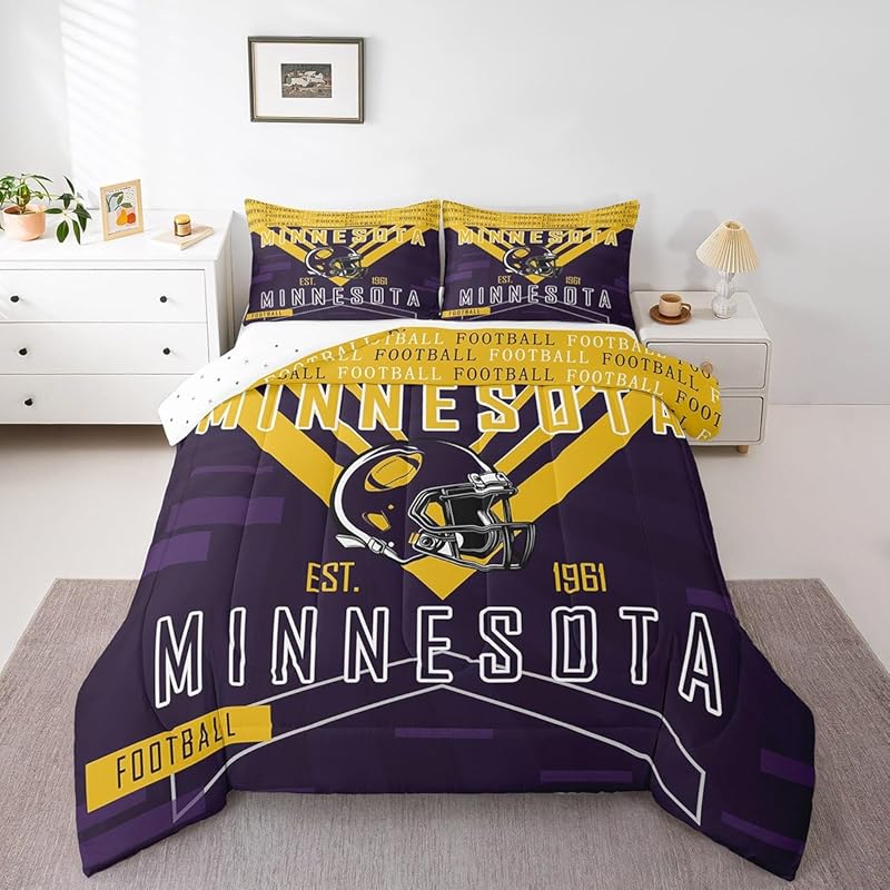 The minnesota vikings bed sets quilt set quilts bedroom bedding set is a durable and soft bedding set made from breathable polyester microfiber. Designed for all seasons, the minnesota vikings bed sets quilt set quilts bedroom bedding set offers lightweight warmth and comfort. The minnesota vikings bed sets quilt set quilts bedroom bedding set includes a zipper closure for easy care and lasting convenience.