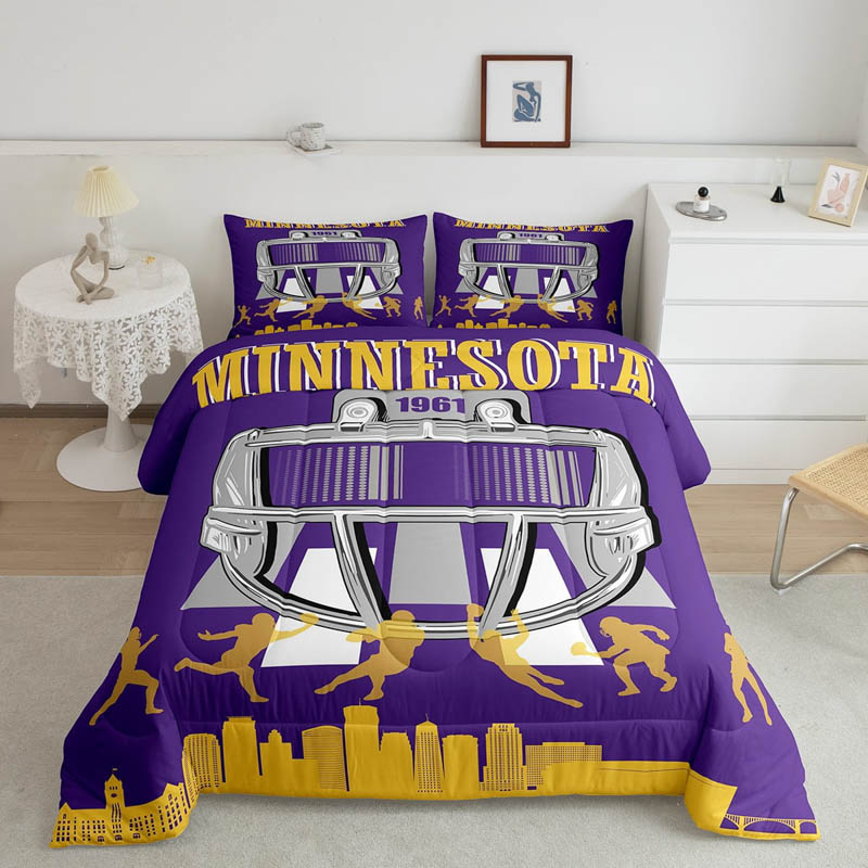 The minnesota vikings bed sets quilt set quilts bedroom bedding sets is a durable and soft bedding set made from breathable polyester microfiber. Designed for all seasons, the minnesota vikings bed sets quilt set quilts bedroom bedding sets offers lightweight warmth and comfort. The minnesota vikings bed sets quilt set quilts bedroom bedding sets includes a zipper closure for easy care and lasting convenience.