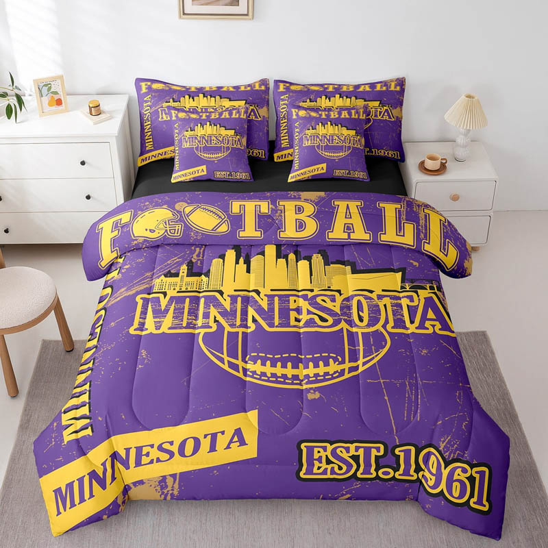 The minnesota vikings bedding set quilt sets quilt bedroom bedding sets is a durable and soft bedding set made from breathable polyester microfiber. Designed for all seasons, the minnesota vikings bedding set quilt sets quilt bedroom bedding sets offers lightweight warmth and comfort. The minnesota vikings bedding set quilt sets quilt bedroom bedding sets includes a zipper closure for easy care and lasting convenience.