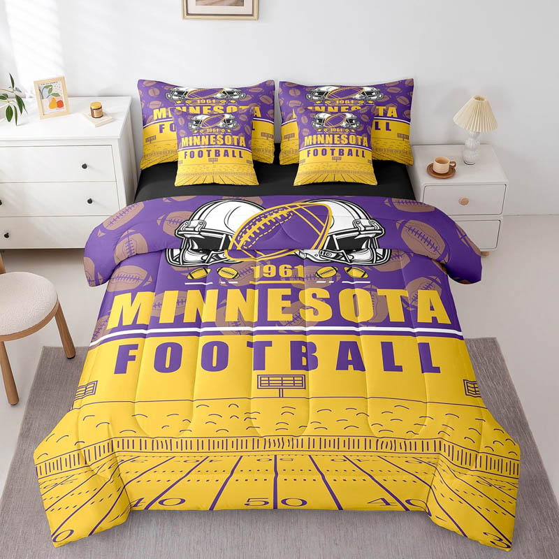 The minnesota vikings bedding sets quilt set quilts bedroom bedding set is a durable and soft bedding set made from breathable polyester microfiber. Designed for all seasons, the minnesota vikings bedding sets quilt set quilts bedroom bedding set offers lightweight warmth and comfort. The minnesota vikings bedding sets quilt set quilts bedroom bedding set includes a zipper closure for easy care and lasting convenience.