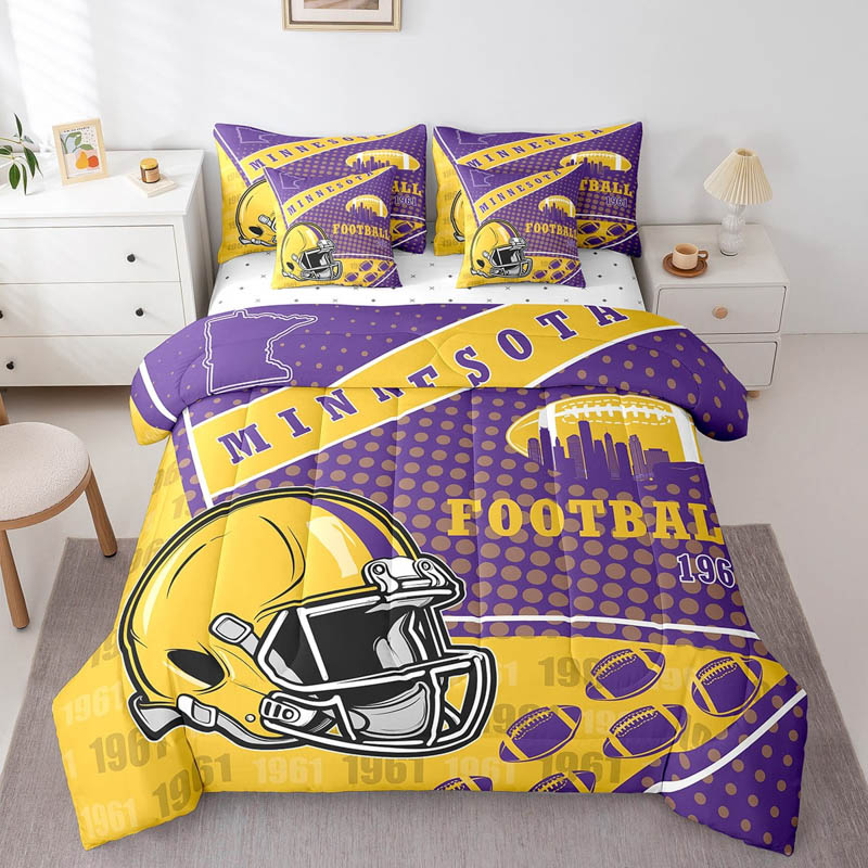 The minnesota vikings bedding sets quilt sets quilt bedroom bedding sets is a durable and soft bedding set made from breathable polyester microfiber. Designed for all seasons, the minnesota vikings bedding sets quilt sets quilt bedroom bedding sets offers lightweight warmth and comfort. The minnesota vikings bedding sets quilt sets quilt bedroom bedding sets includes a zipper closure for easy care and lasting convenience.