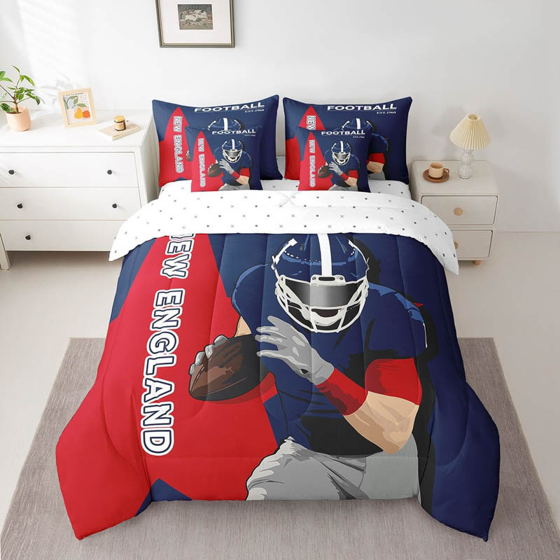 The new england patriots bedding set quilt sets quilts bedroom bedding set is a durable and soft bedding set made from breathable polyester microfiber. Designed for all seasons, the new england patriots bedding set quilt sets quilts bedroom bedding set offers lightweight warmth and comfort. The new england patriots bedding set quilt sets quilts bedroom bedding set includes a zipper closure for easy care and lasting convenience.