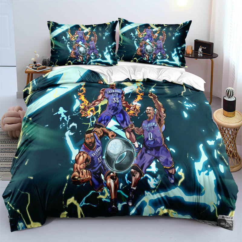 The oklahoma city thunder bedding set quilt set quilt bedroom bedding set is a durable and soft bedding set made from breathable polyester microfiber. Designed for all seasons, the oklahoma city thunder bedding set quilt set quilt bedroom bedding set offers lightweight warmth and comfort. The oklahoma city thunder bedding set quilt set quilt bedroom bedding set includes a zipper closure for easy care and lasting convenience.