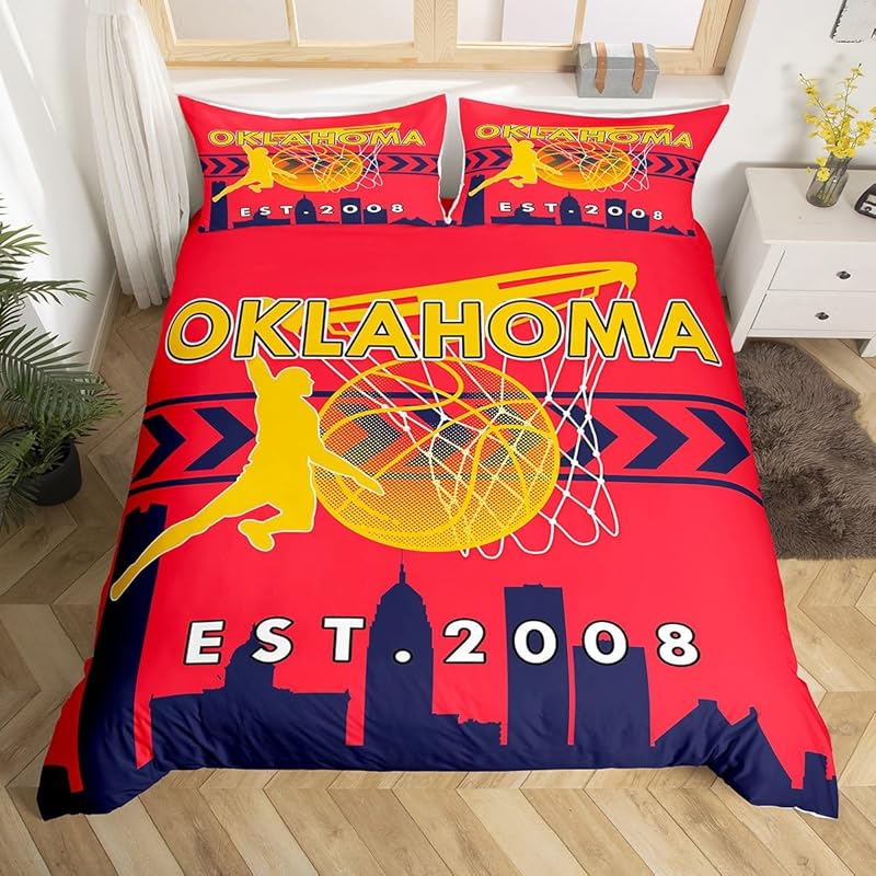 The oklahoma city thunder bedding set quilt sets quilts bedroom bedding sets is a durable and soft bedding set made from breathable polyester microfiber. Designed for all seasons, the oklahoma city thunder bedding set quilt sets quilts bedroom bedding sets offers lightweight warmth and comfort. The oklahoma city thunder bedding set quilt sets quilts bedroom bedding sets includes a zipper closure for easy care and lasting convenience.