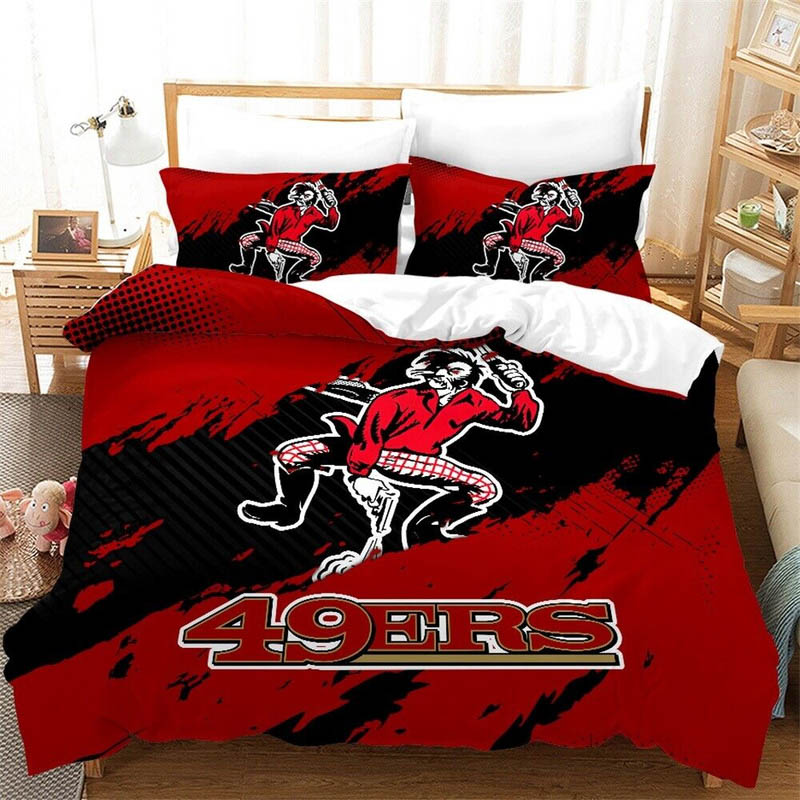 The san francisco 49ers bed set quilt sets quilt bedroom bedding set is a durable and soft bedding set made from breathable polyester microfiber. Designed for all seasons, the san francisco 49ers bed set quilt sets quilt bedroom bedding set offers lightweight warmth and comfort. The san francisco 49ers bed set quilt sets quilt bedroom bedding set includes a zipper closure for easy care and lasting convenience.